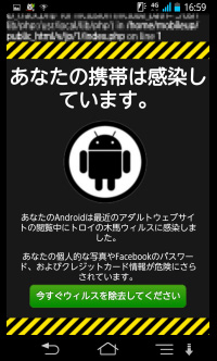 Androidスマホで ウイルスに感染しています の警告が