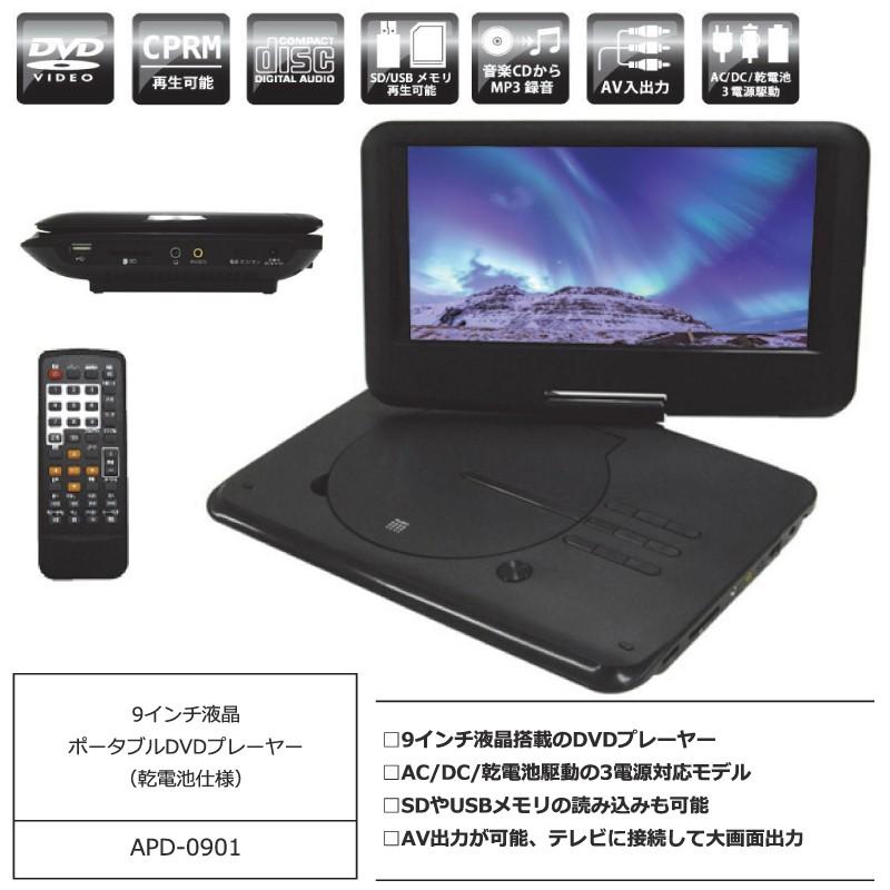 9インチポータブルdvdプレーヤー 9インチ 乾電池対応 Av出力 Sd Usb Apd 0901 F Apd 0901 Fafe 通販 Yahoo ショッピング