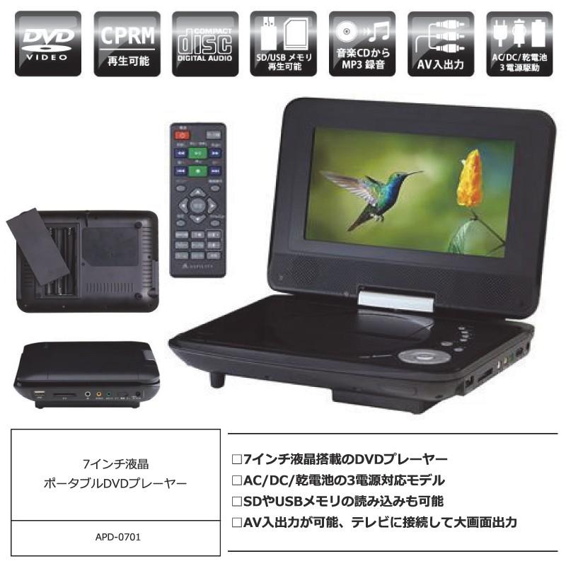 7インチポータブルdvdプレーヤー 7インチ 乾電池対応 Av出力 Sd Usb Apd 0701 F Apd 0701 ショッピング ラボ 通販 Yahoo ショッピング