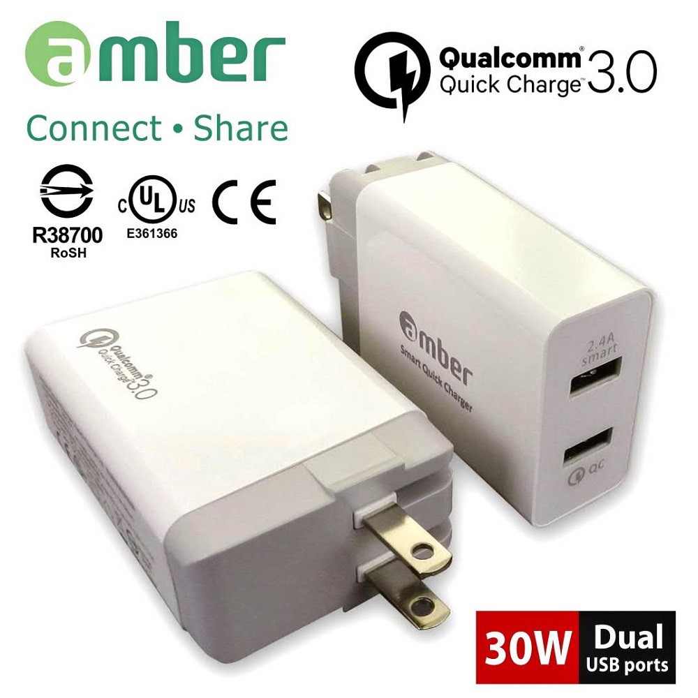 Amber 智慧極速usb充電器 雙口輸出 30w足瓦高通qualcomm Quick Charge 3 0認證 蝦皮購物