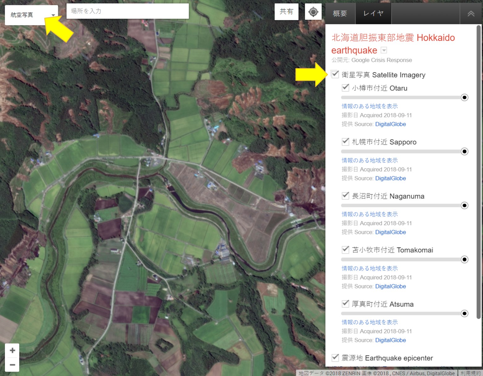 Google Japan Blog 北海道胆振東部地震 衛星写真を公開しました