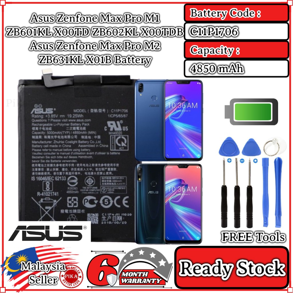 Original 5000mah Battery C11p1706 For Asus Zenfone Max Pro M1 Zb601kl Zb602kl X00td Zenfone Max Pro M2 Zb631kl X01bda Shopee Malaysia